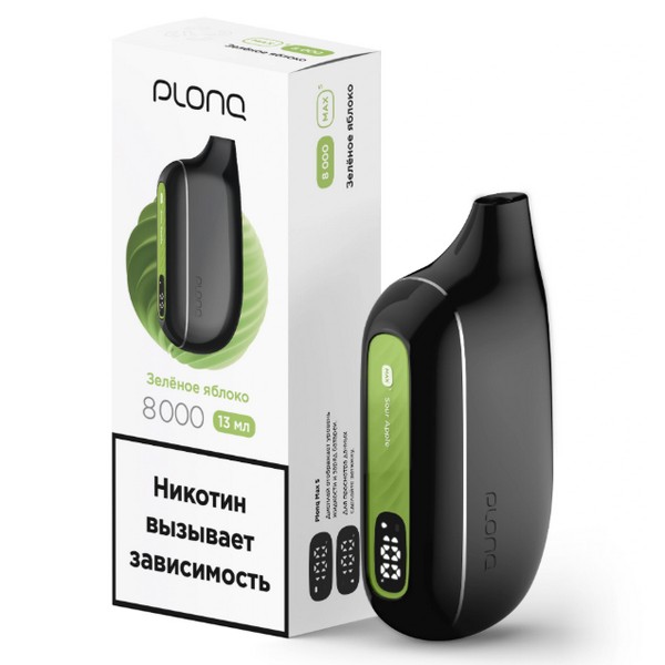 Насыщенный аромат сочного зеленого яблока. Plonq Max Smart имеет встроенный LCD дисплей, который показывает уровень заряда батареи устройства и уровень жидкости с точностью до процента.