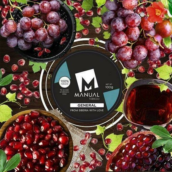 Интересное сочетание вкуса спелого граната и красного винограда. Кисло-сладкий микс, который покорил не мало сердец любителей вкусного и дымного кальяна. Табак для кальяна Manual (Мануал) - новый продукт на рынке. Производится на основе табачного листа Berley, немецкого глицерина и натуральных ароматизаторов. Компания использует табачное сырье только высшего качества. Ароматизаторы, которые используются в продукте, в основном из Америки, Европы и Малайзии. Еще один очень важный компонент каждой смеси – это натуральный алтайский цветочный мёд. Табак для кальяна не содержит жидкого никотина, сиропов, и красителей вредных для здоровья.