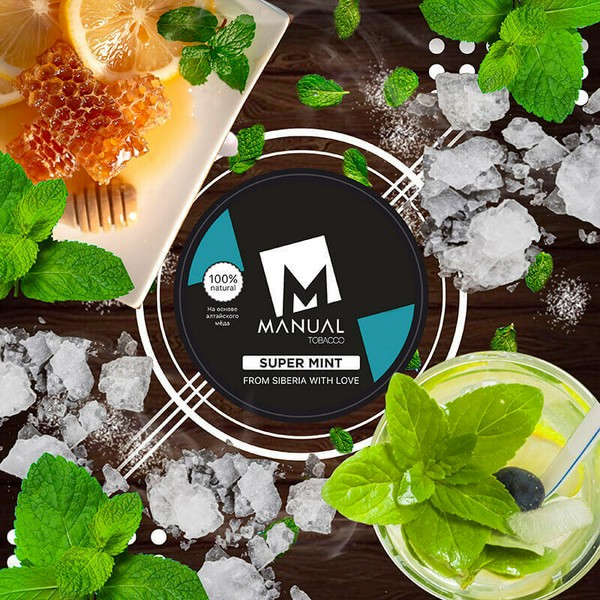 Чистый и приятный вкус душистой мяты. Ощущается лёгкая сладость и мощный охлаждающий эффект. Табак для кальяна Manual (Мануал) - новый продукт на рынке. Производится на основе табачного листа Berley, немецкого глицерина и натуральных ароматизаторов. Компания использует табачное сырье только высшего качества. Ароматизаторы, которые используются в продукте, в основном из Америки, Европы и Малайзии. Еще один очень важный компонент каждой смеси – это натуральный алтайский цветочный мёд. Табак для кальяна не содержит жидкого никотина, сиропов, и красителей вредных для здоровья.