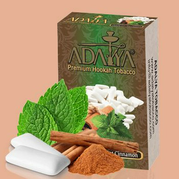 ADALYA - CHEWINGGUM CINNAMON - жевательная резинка с мятой и корицей. ADALYA TOBACCO – турецкий кальянный табак. Изготовлен из табачного листа Virginia. Имеет обильную пропитку сиропом. Как забить? Табак для кальяна Адалия лучше всего расрывается на глиняных и силиконовых чашах. Рекомендована воздушная забивка, не требуется нарезка или отжим.