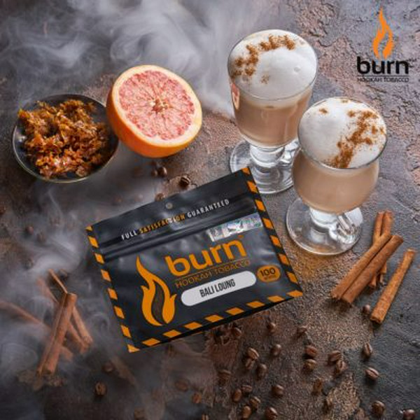 BURN - BALI LOUNGE - очень сочный, освежающий, со сладким привкусом аромат, который даст Вам ощущение солнца и тепла. Ананас с грейпфрутом идеально создают атмосферу тропиков и летнего настроения. Капучино окутает Вас ощущением спокойствия и релакса. Burn - качественный российский табак. В Составе - натуральный мед, фрунцузский лист Virginia Gold, растительный глицерин и натуральные ароматизаторы. Перед фасовкой, табачное сырье выдерживается порядка месяца. При изготовлении используются качественные ароматизаторы из 8 стран, в том числе из Щвейцарии и Японии.