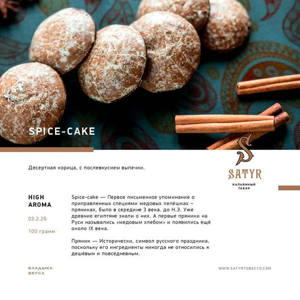 ТАБАК SATYR - КОРИЧНЫЙ ПРЯНИК 100 отлично подойдет как для покупки в качестве подарка, так и для того, чтобы порадовать себя. Высокое качество не оставит вас равнодушным. ТАБАК SATYR - КОРИЧНЫЙ ПРЯНИК 100 — это прекрасный выбор! Также на нашем сайте JustFreid вы можете найти и другие товары от бренда SATYR, которые также порадуют вас отличным качеством.