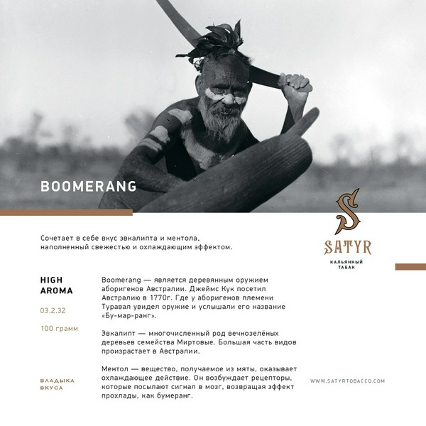 ТАБАК SATYR - ЭВКАЛИПТ ЛЁД BOOMERANG 100 отлично подойдет как для покупки в качестве подарка, так и для того, чтобы порадовать себя. Высокое качество не оставит вас равнодушным. ТАБАК SATYR - ЭВКАЛИПТ ЛЁД BOOMERANG 100 — это прекрасный выбор! Также на нашем сайте JustFreid вы можете найти и другие товары от бренда SATYR, которые также порадуют вас отличным качеством.
