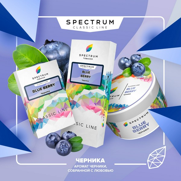 SPECTRUM - BLUE BERRY - аромат черники, собранной с любовью. Spectrum – табак очень комфортной крепости: он накуривает, не бьет по горлу и подойдет как любителям легких забивок, так и тем, кому нравится покрепче. В основе лежит чистый лист Burley."